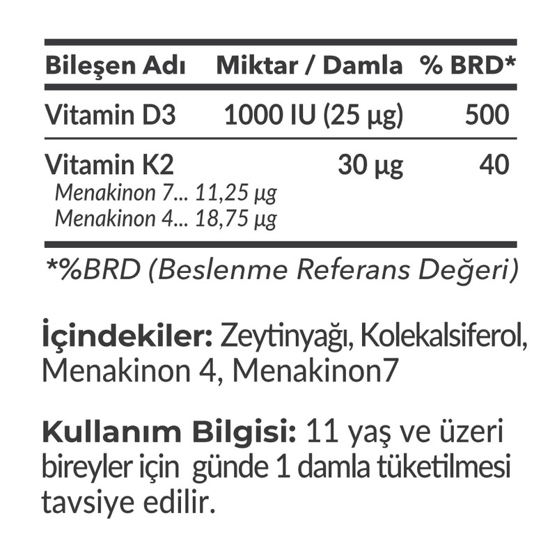 - D3 ve K2 içeren takviye edici gıda, organik zeytinyağı