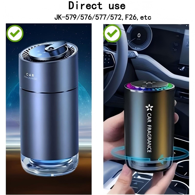 - 【Compatibility】:Can be directly used with car air freshener devices shown (e.g., JK-579/576/577/572, F26, etc.). For other types of air fresheners, pour the fragrance into the original container. Note: This fragrance is designed for smart car air fresheners, so it won’t clog.
