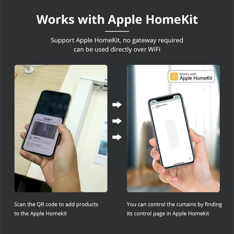 - With built-in WiFi, this smart motorized curtain track system supports with Homekit, it's compatible with Alexa, Google Home and Apple Home devices. No Adapter is required.