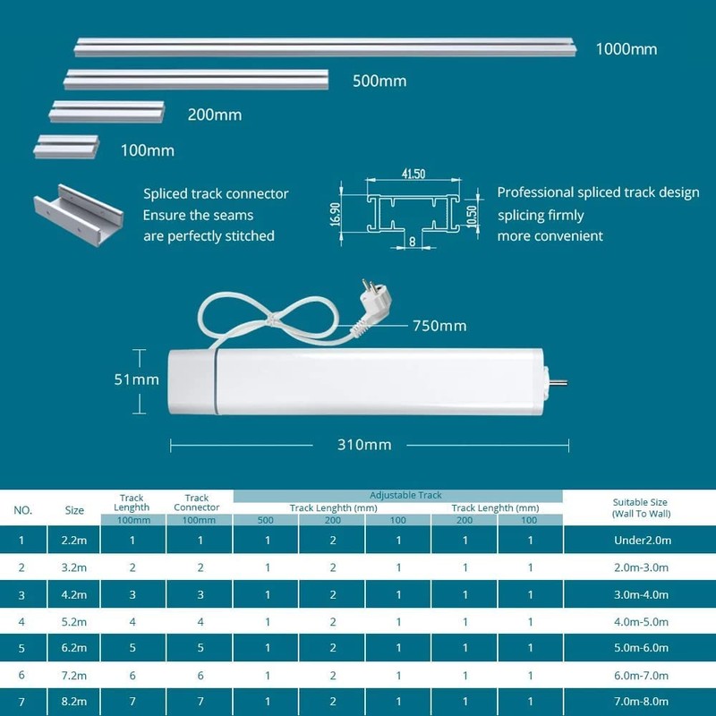 - Smart Curtain Tracks, suitable for heavy-duty curtains and profession stage curtains up to 50 KGs.