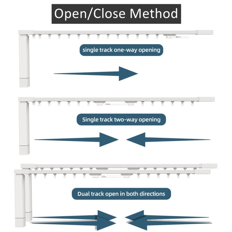 - With 1Meter DIY Tracks: 0.5m*1+0.2m*2+0.1m*1, Packed with all-in-one curtain system. (No curtain fabric is included) Set the schedule previously via App, the curtain will be open and closed automatically.