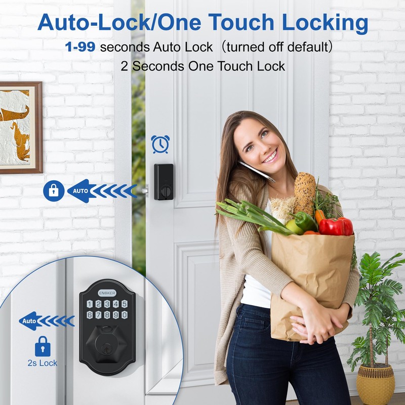 • Auto-Lock & Free Passage: This keyless entry door lock can be set to be locked automatically in 1s-99s after the door closes while you leave home in a hurry. Free Passage keeps the door unlocked during frequent entry or during peak hours, perfect for kids to play around, party time, or frequently carrying objects.