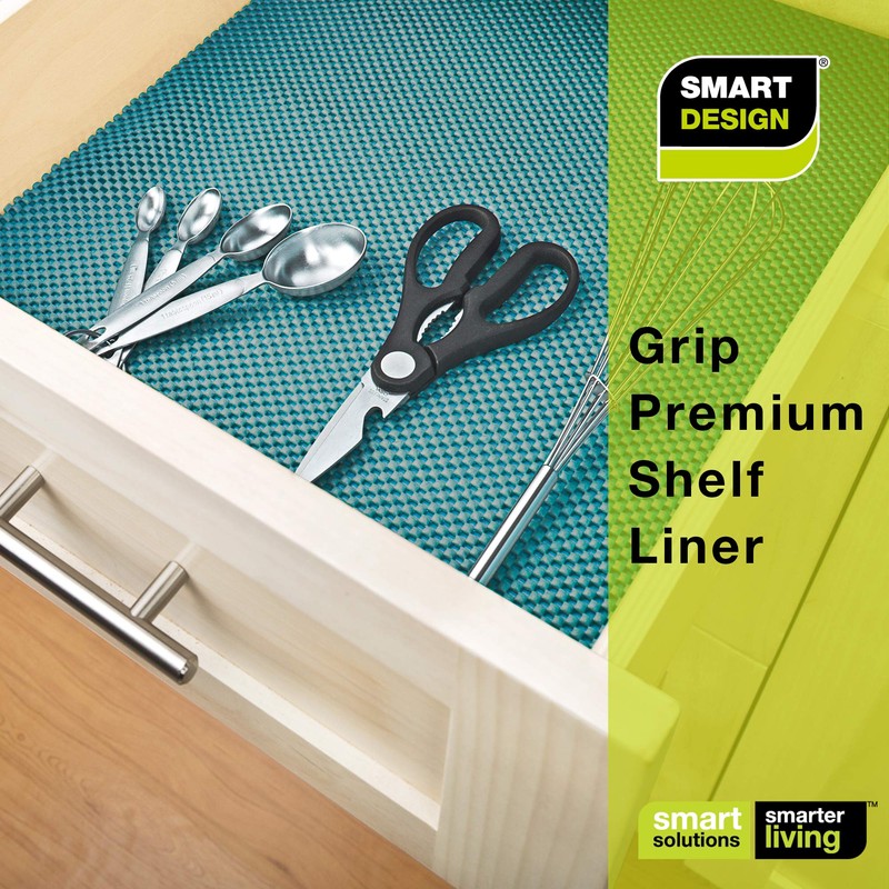 **Smart Design Shelf Liners** Shelf Liners cushion and protect your surfaces and home goods from everyday wear and tear. Our selection of colors and designs will add style and freshen up your shelves, drawers and closets. **Package Includes** Includes Premium Grip Shelf Liner. For covering shelves, cabinets, closets, drawers, arts & crafts. **Features and Benefits** Easy to cut and apply with no adhesive to get in the way of application. Washable and wipes clean w/ a damp cloth. **Product Specifications** Roll Size: 18 Inches x 8 Feet Color: Multicolor Selections Material: Extra Durable and Washable Material Design: Non-Slip and Non-Adhesive **Brand and Warranty Info** People around the world live smarter with Smart Design, manufacturers of innovative, high-quality home and commercial organizational and laundry care products. Since 1970, Smart Design has set the standard of excellence in the Home Organization Industry by developing products that allow consumers to optimize their needs. Everything from your closet, kitchen, laundry room, home office, garage and auto to your workplace. Located in Southern California, Smart Design is a family-owned company with customer service at the core of our business. If you have any questions, issues, or concerns about your order, reach out to our Customer Service Team via email anytime, 24/7. Our Team will do their best to respond to all emails within 24 hours. Visit us online for phone support Monday-Friday 8 am – 5 pm PST.