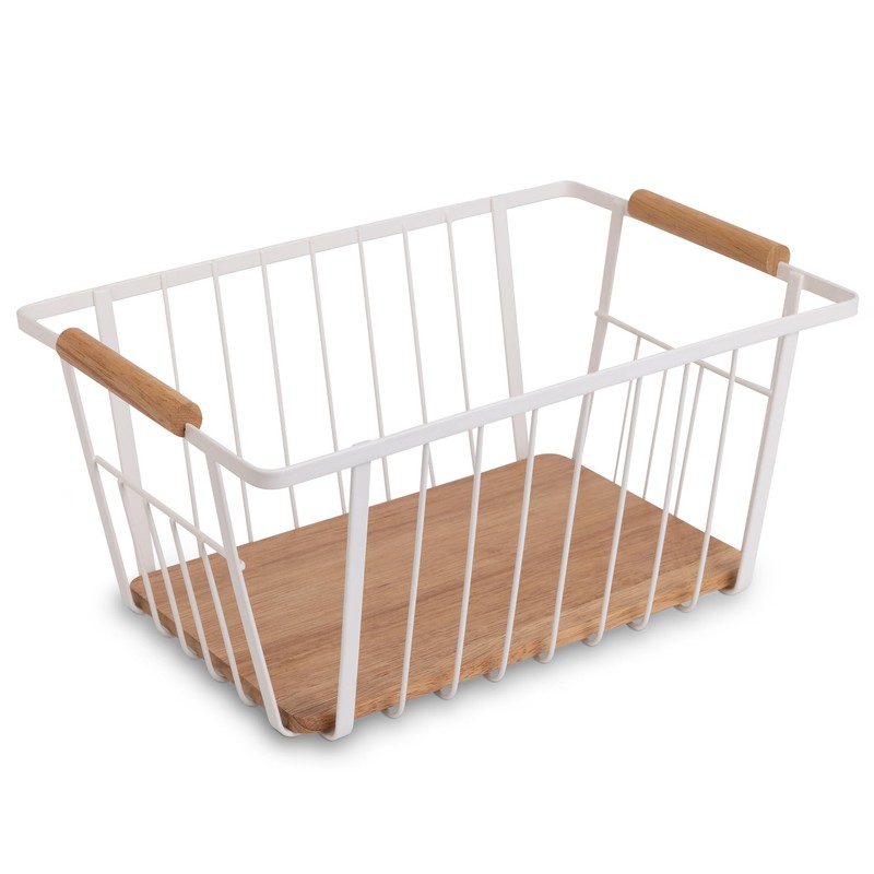 Smart Design Wood and Steel Wire Basket - 12.75" x 8.5' x 6" - White
