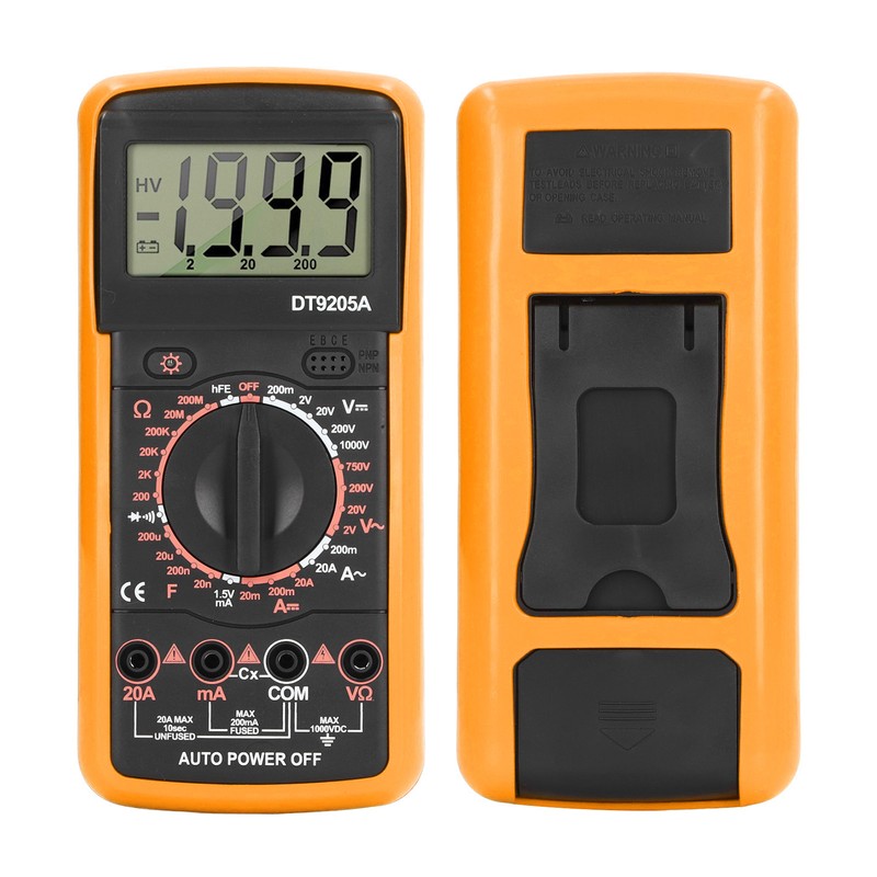 1、FOR HOME USE: The digital multimeter has a variety of detection functions and is compact, commonly used for home circuit detection. 2、WITH SUPPORT: The back of the multimeter has a retractable support, with 90 degree adjustment, which is convenient for standing operation. 3、GOOD PROTECTION: The groove design and anti falling silicone material of the multimeter effectively protect the hardware from damage. 4、POWER SAVING MODE: When the multimeter is not used for 10 minutes under low power mode, it will automatically shut down to save energy. 5、EASY OPERATION: The multifunction meter adopts LCD screen to display values clearly, and uses knob to adjust, which is easy to operate.