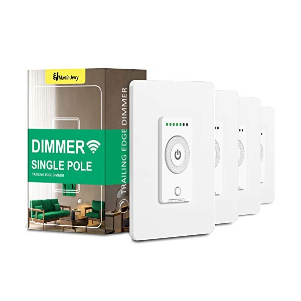Smart Dimmer Switch 4 Pack by Martin Jerry | Rotary Trailing Edge Dimmer Light Switch, Voice Control by Alexa, Google Home, SmartLife App, Needs Neutral Wires, 2.4G WiFi