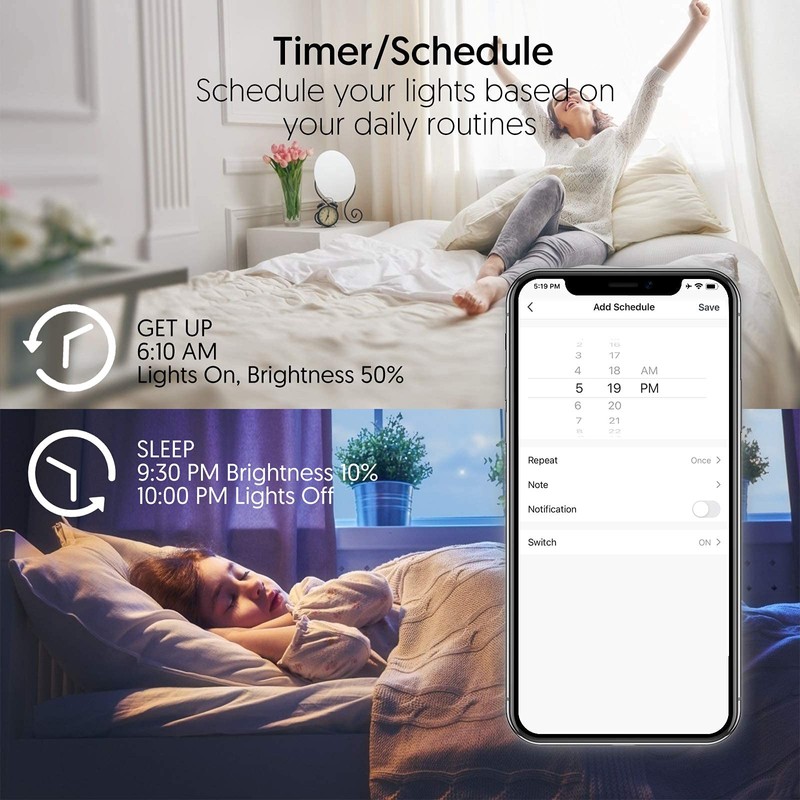 - 【Countdown Timer & Schedule】This smart wall switch supports remote and Wifi control. Create your smart switch to automatically turn on at dusk and off at dawn by APP built-in timer and schedule. Set your routine to get kids sleep better and save your pocket money. Warranty is 12 months. Any issues, feel free to contact us for supports.