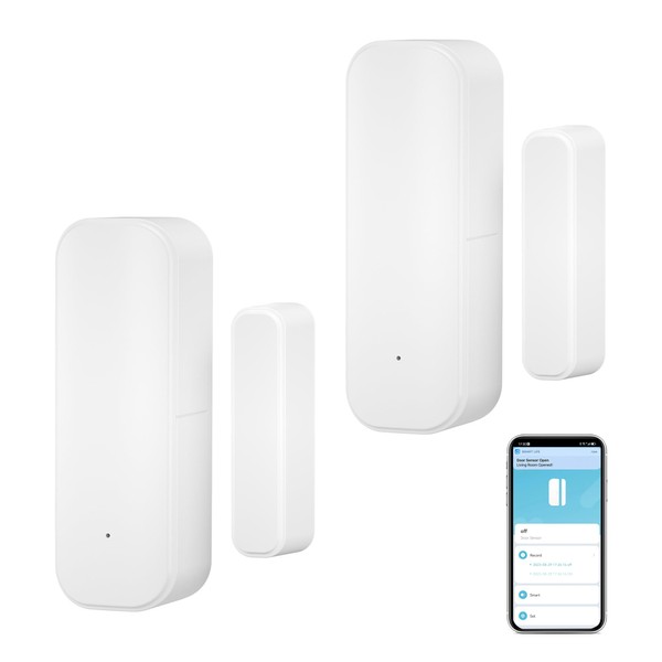 Smart Door and Window Sensor: Wifi Door Sensor for Home Security, App Alerts, Wireless Contact Sensor, Programmable with Smart Life Devices, Compatible with Alexa, Google Assistant (2-Pack)