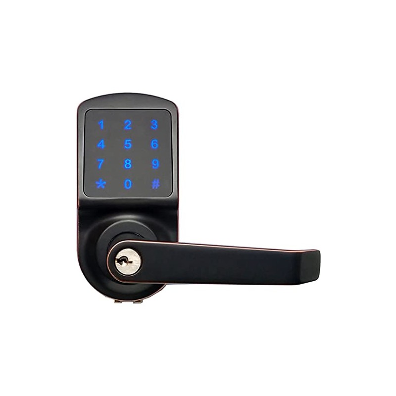 - 1.The touchscreen door lock with backlight.The blue backlight let you enter pin code more convenient even in darkness.