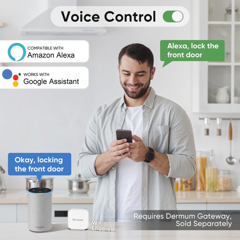 - [Voice Control] Compatible with Alexa and Google Assistant. Lock, unlock, and check status hands-free. (Gateway required, sold separately.)