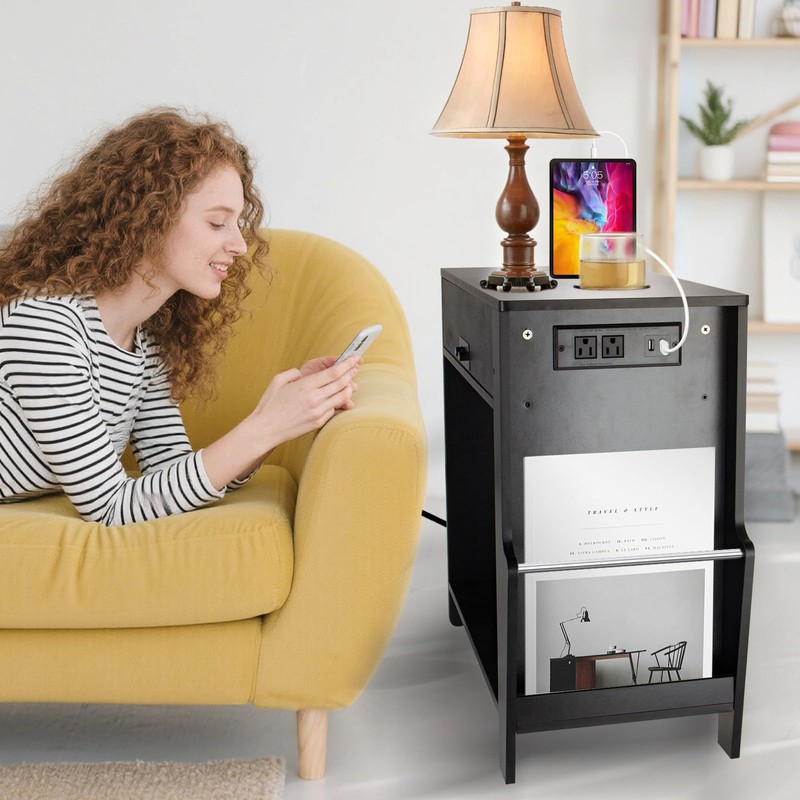 - 【All-in-One Smart Side Table】Black end table with built-in bluetooth speaker, charging station, wireless charger, magazine holder and cup holder, everything you need is right here.