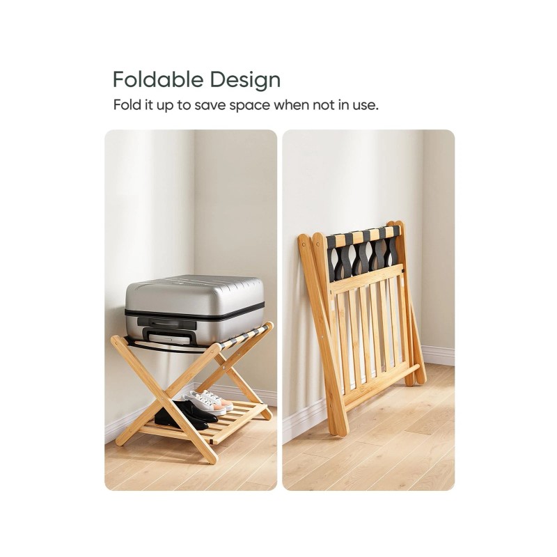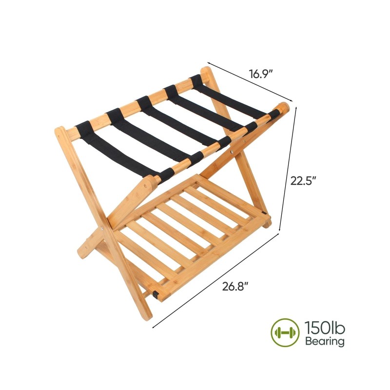 - Sturdy and DurableCrafted from 100% solid bamboo and 5 heavy duty nylon straps, the suitcase stands are built to last. They possess excellent weight-bearing capacity, with each rack able to support up to 150 pounds (approximately 68 kg). You can trust that they won't break or deform during use.
