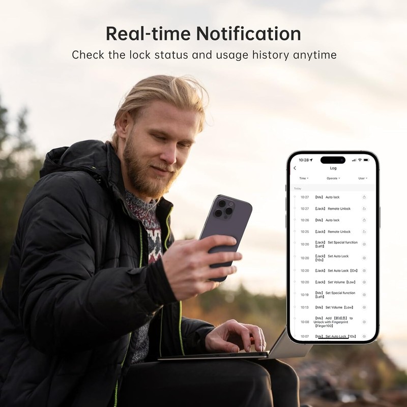 - Easy remote control: Simply add the gateway to control your lock through the APP. You can lock and unlock, share guest access, view live access logs, and receive instant notification of any changes to the door status at any time.