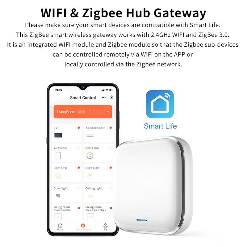 1、Compatibility: This multimode gateway supports Zigbee, WiFi, and BT Mesh three protocols, let the connections between smart home devices more convenient and faster. 2、App Control: Manage your home wherever you are with your smartphone or tablet! Smart Life app keeps you in contact with your home and lets you manage it from anywhere in the world. 3、Voice Control: Control your home with an AI speaker. Just a few words to one of the most popular voice assistants, and things happen in the easiest way possible.
