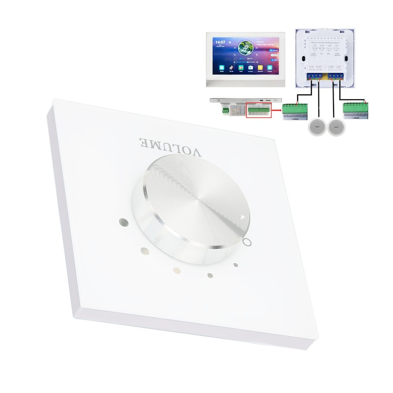 1、Premium Material: The transparent panel of volume controller is made of premium ABS material, which is strong, durable and beautiful. 2、Rotary Button: Volume controller is designed with rotary button and 5 levels of volume adjustment to meet your actual needs. 3、Wide Application: Smart home volume controller is suitable for volume control, tuning switch, background music switch. 4、Dual Channel: Home tuning switch with dual channel stereo adjustment, can control the volume adjustment of two speakers at the same time. 5、Easy Wiring and Installation: Smart home volume controller is easy to install, simple wiring, practical and convenient.