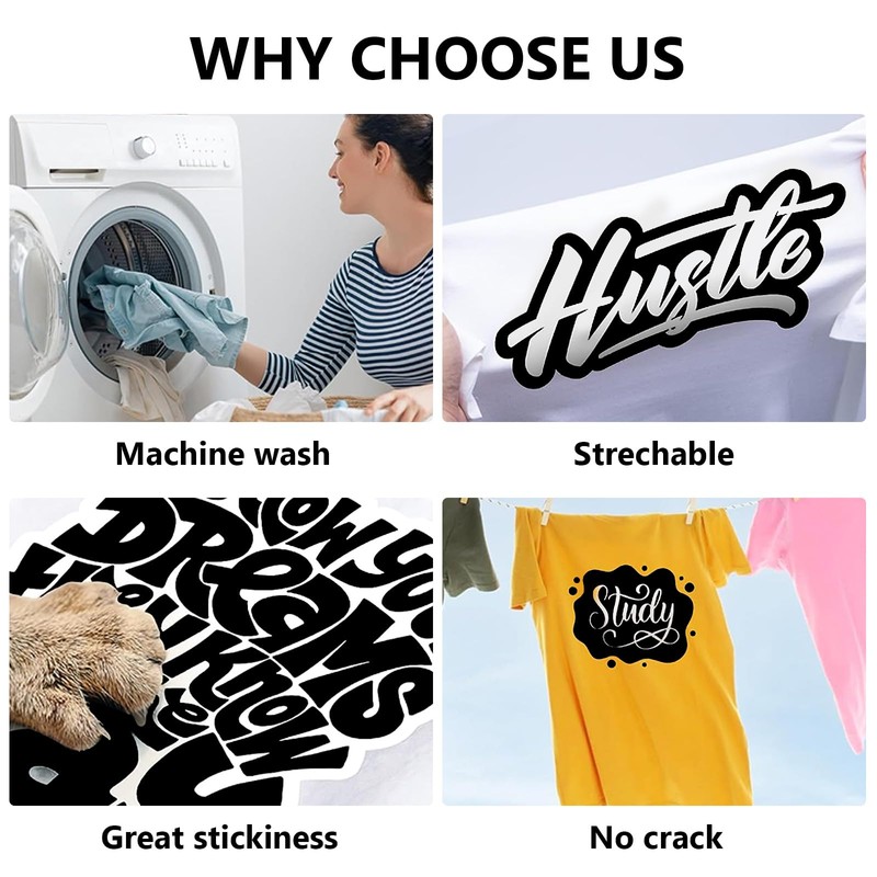 - 【Multiple washing】Heat transfer vinyl sheets work great and it retains shape and vibrancy of the colour even after a long period and repeated washes. Reverse washing is better.