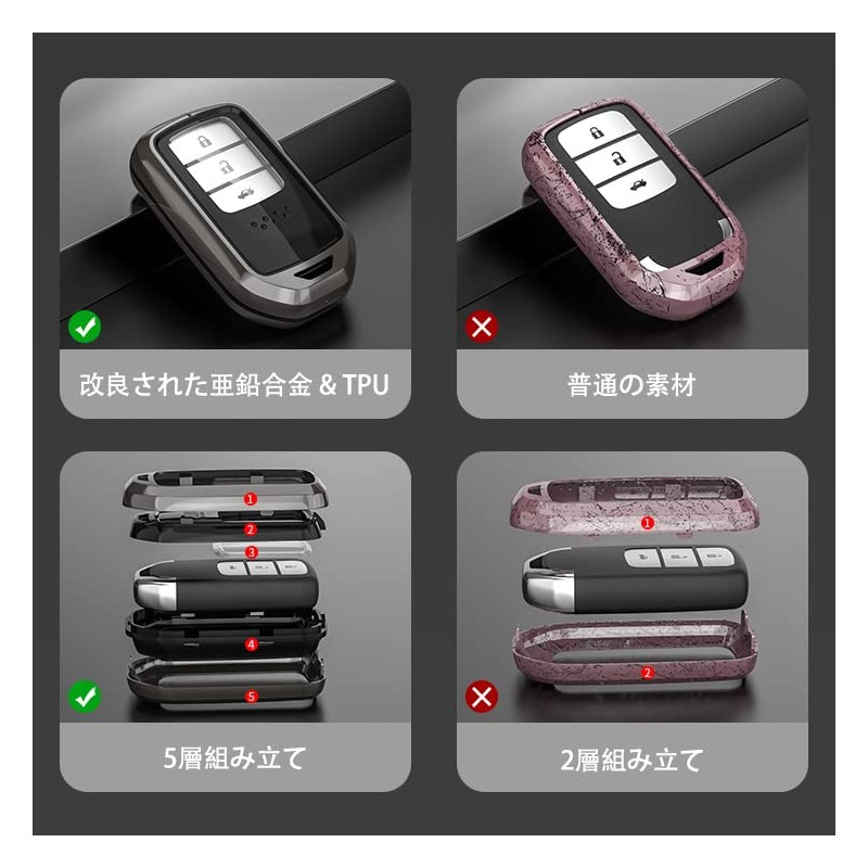 Smart Key Case for Honda 2/3/4/5/6 Button Keyless Entry Honda 2015 - Upcivic Accord Fit Pilot CR-V Honda Key Case Assembly Key Case Metal Key Bag Key Bag Cover Comfortable Touch Key Chain Key Case