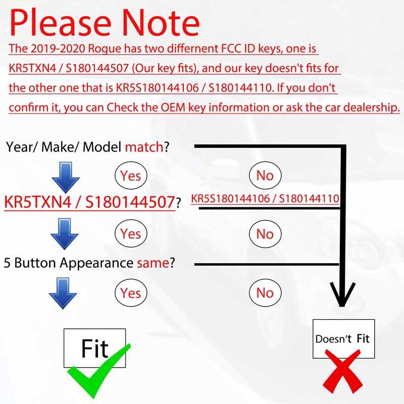 - ★REPLACEMENT: This Smart Remote Replacement Is Compatible with the 2019-2021 Nissan Rogue. Please Check Our Product Description and Vehicle Fitment Tool for Full Compatible Vehicles List.