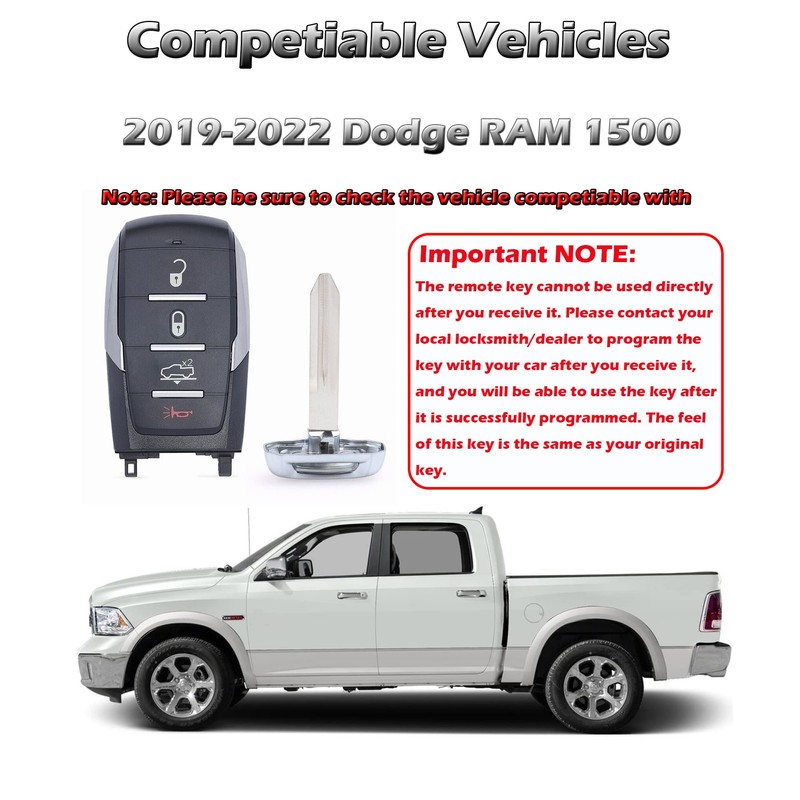 - Compatibility: Fit for 2019-2024 Dodge RAM 1500, OHT-4882056 4A/433.92MHz
