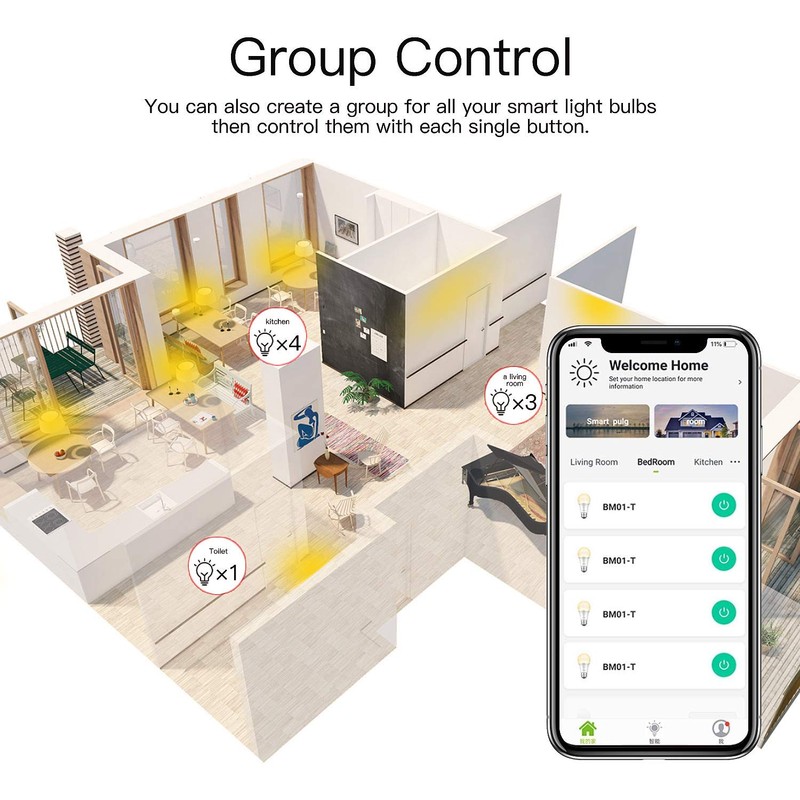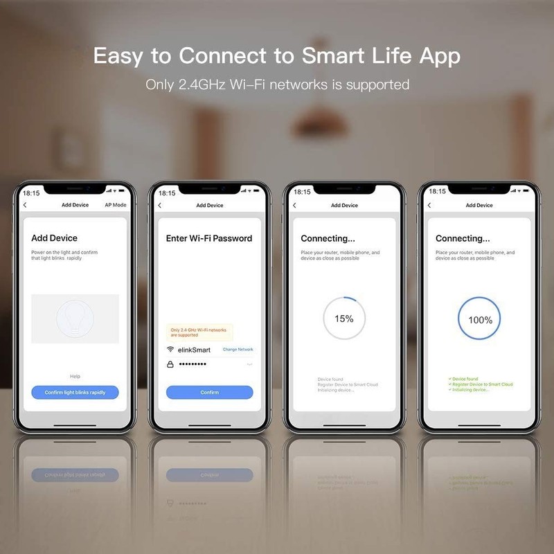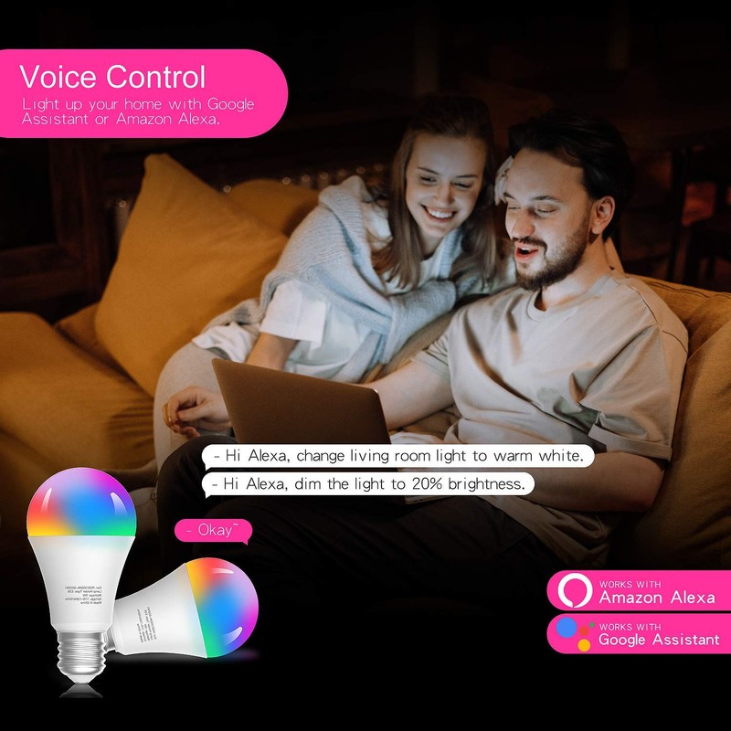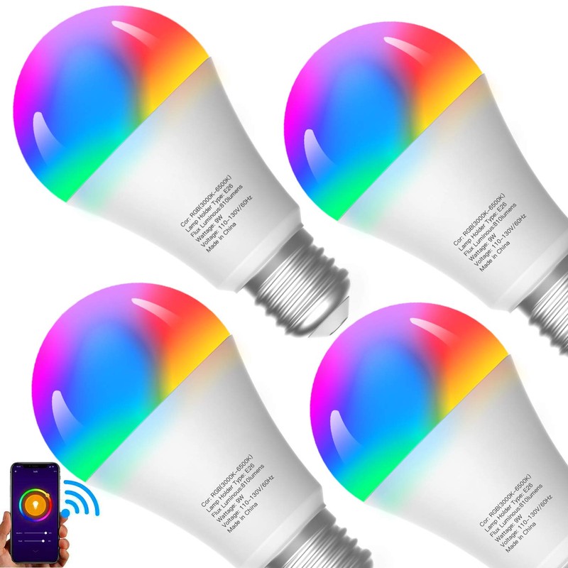 Smart Light Bulbs, Compatible with Alexa/Google Home/Echo, eLinkSmart WiFi LED Dimmable RGB 16 Million Color Changing,Timing, A19 E26 9W Engery Saving, 2.4Ghz WiFi Only, No Hub Required, 4 Pack