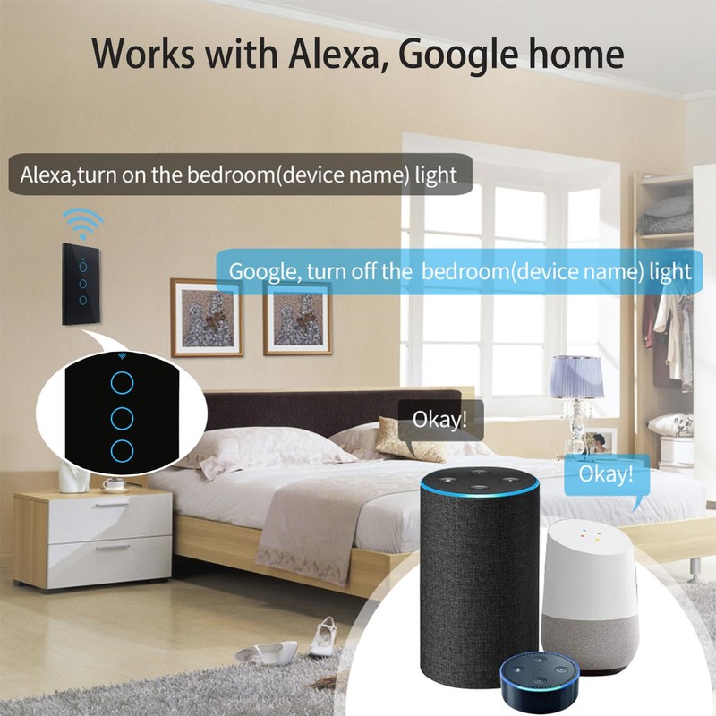 • 【Wide Application】The alexa light switch is compatible with almost any type of incandescent, fluorescent or LED bulbs. Suitable for residential or commercial applications such as homes, schools, offices, commercial buildings, airports, public restrooms, hospitals and hotels.
