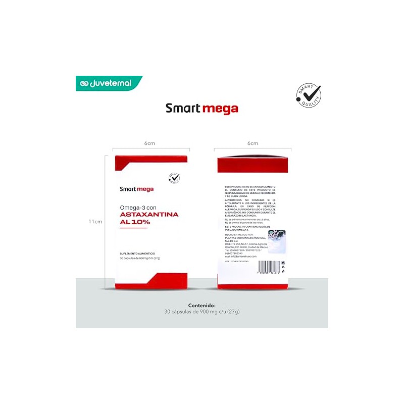 Smart Mega PACK 2x1 OMEGA 3 con Astaxantina 10, Suplemento Alimenticio, 30 cpsulas, Salud Cardiovascular y Proteccin Celular