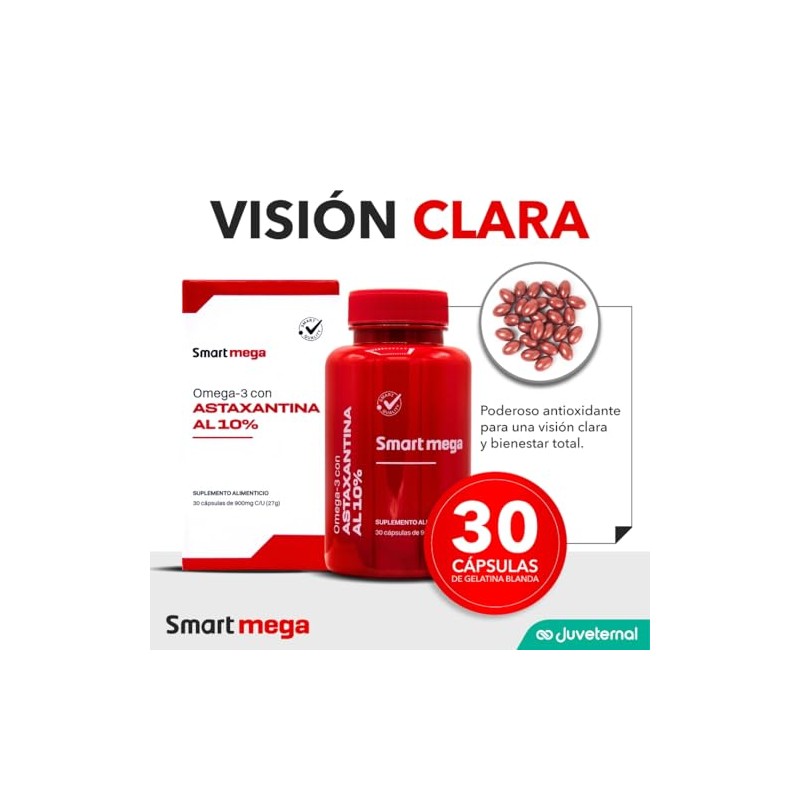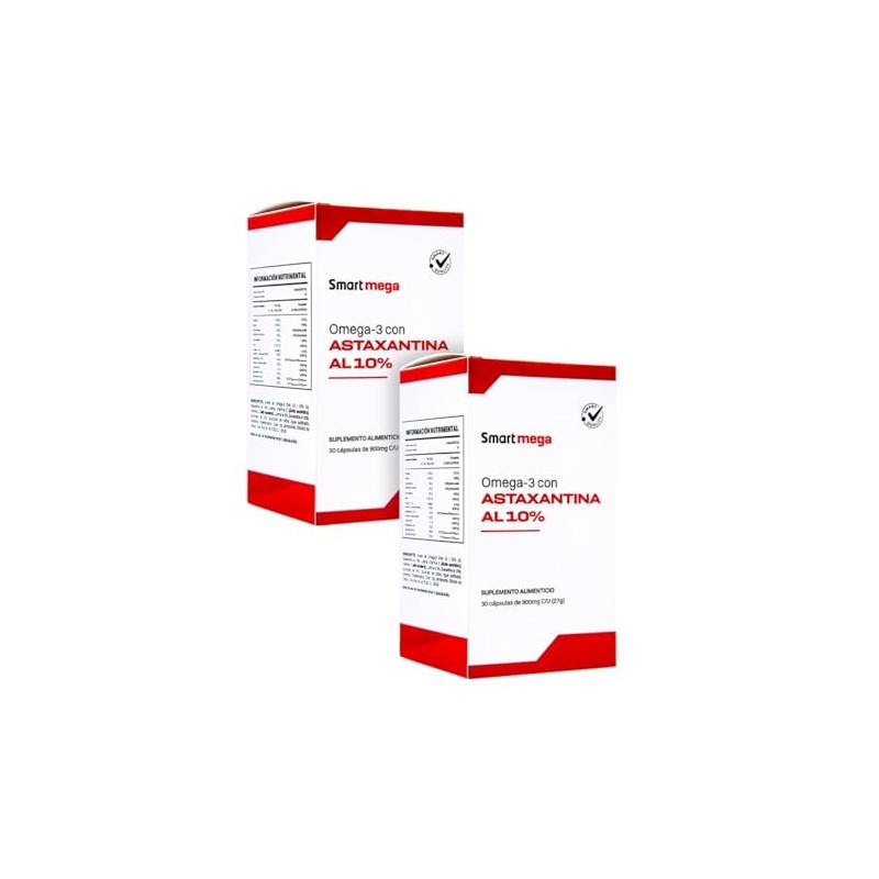 Smart Mega PACK 2x1 OMEGA 3 con Astaxantina 10, Suplemento Alimenticio, 30 cpsulas, Salud Cardiovascular y Proteccin Celular