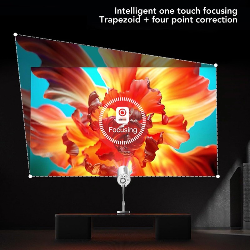 3. Smart 1 Pushbutton Focus: With trapezoidal and 4 point correction, the focus is accurate, and the picture is clear. Optical lens, 1200LM brightness, high uniformity, 98% light transmittance. It supports cordless or wired, screencasting or screen mirroring.