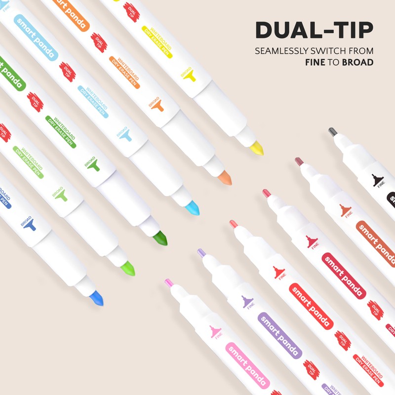 Smart Panda 12 Whiteboard Pens Dual Tip, Thin White Board Markers Erasable, Broad and Fine – Dry Erase Marker Pens, Colour Dry Wipe Markers