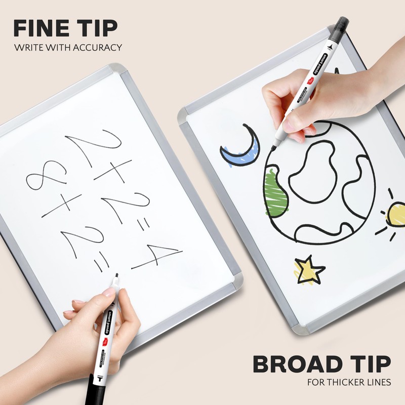 - Dual Tip Marker Pens - Write with pinpoint accuracy. Each marker pen is Dual tip (Broad and Fine Point). Broad tip is for drawing and illustration, Precision tip is for detail and definition.