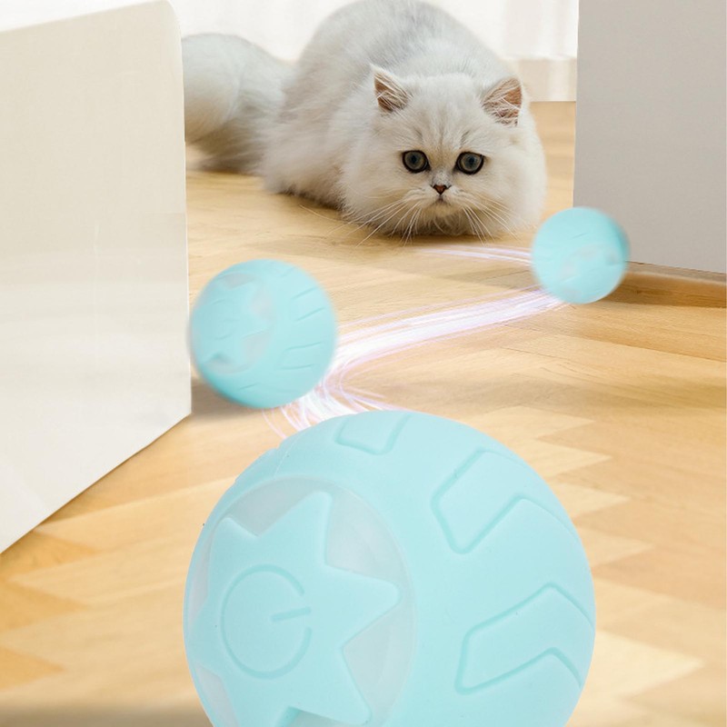 Smart Pet Toy Ball ABS and Silicone Automatic Rolling Toy Cat Interactive Ball for Home Blue