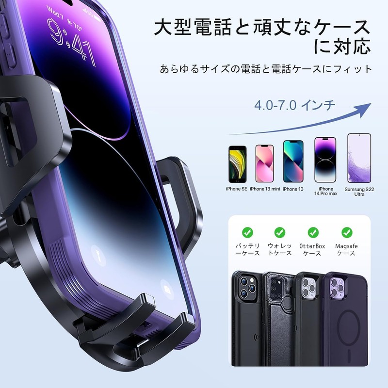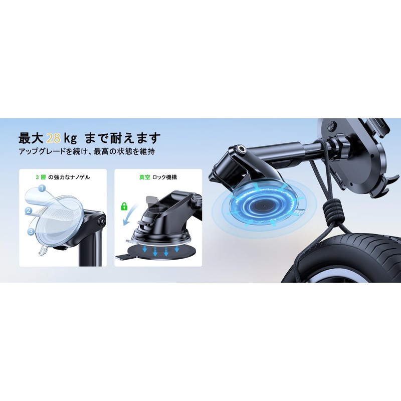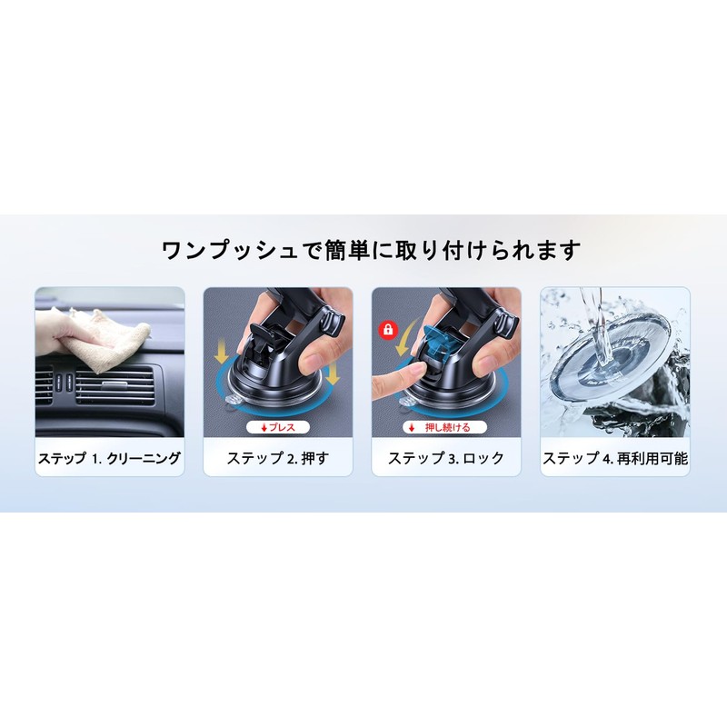 • Super Strong Vacuum Suction Cup, Can be Washed with Water: The suction cup of the vacuum suction cup is held firmly in place with vacuum to prevent the car holder from falling off even in engine vibrations and bumpy roads (44.1 lbs (20 kg), and more than 10 times the conventional model). The 2-step locking feature allows for a secure fit and adheres to smooth and rough surfaces without any gaps, so it will not interfere with driving. In addition, if the suction cup becomes dirty and the suction strength weakens, simply wash it with warm water and dry it to restore its suction strength after multiple washes and reuse