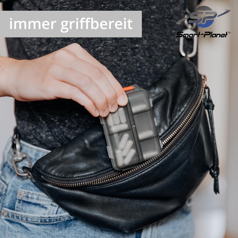 Smart-Planet ToGo Pill Box Small for Travelling - Tablet Box 10 Compartments - Senior-Friendly Medication Box - Mini Pill Box Organiser for Supplements