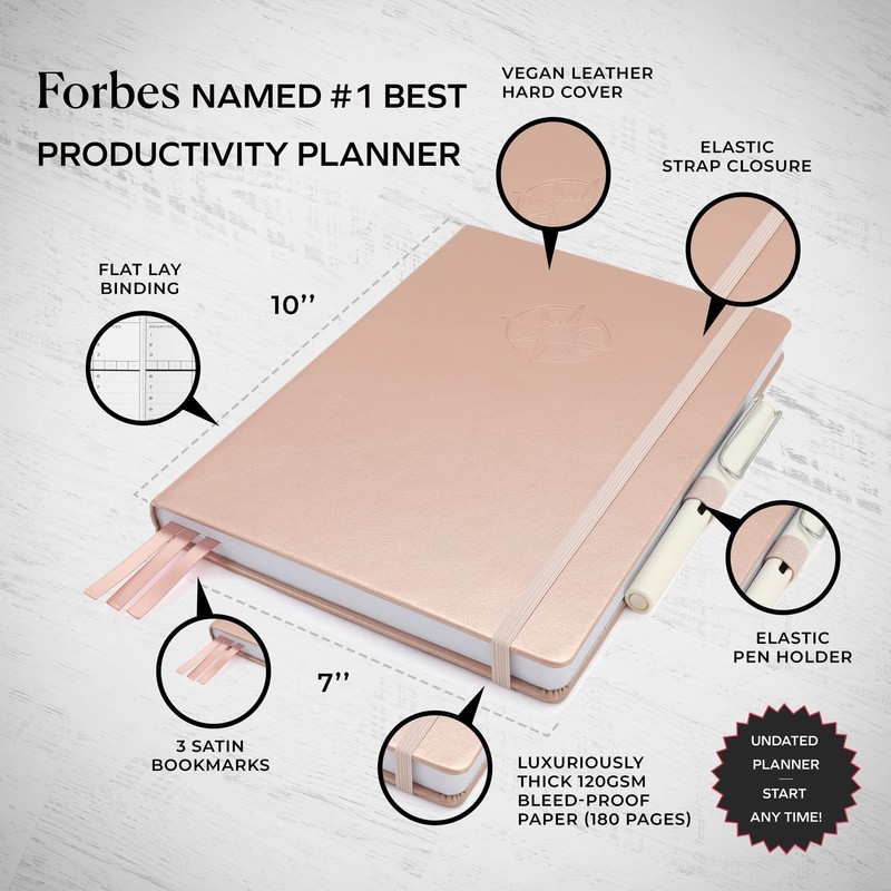 Smart Planner Pro – Medium 10 x 7 inches (B5) – Undated Agenda Daily Planner – Tested & Proven to Achieve Goals & Increase Productivity, Time Management & Happiness with Weekly, Monthly, Gratitude Sections, Back Pocket (Rose Gold)