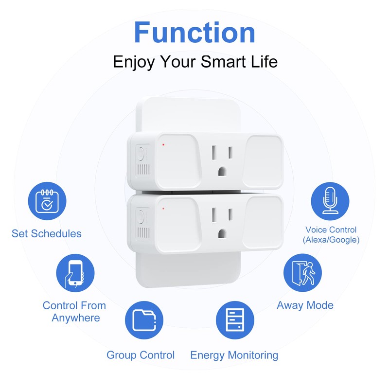 - [Energy saving and safe] The smart plug has a convenient timer function that automatically and intelligently turns on/off your home appliances,also can protect the devices safely and prevent your appliances from overcharging and overheating, and reducing energy use .