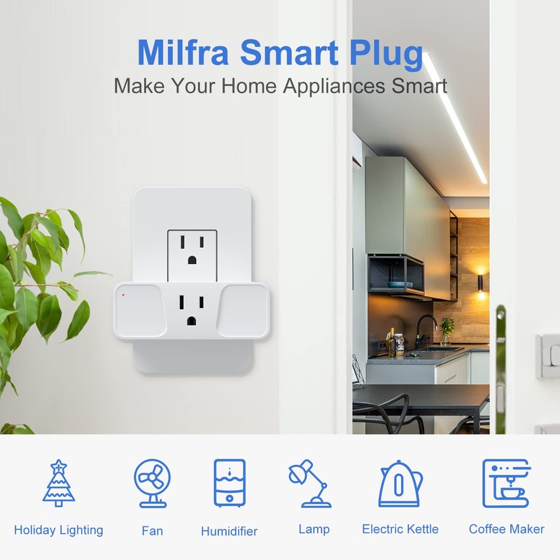Smart Plug, 2 Pack Milfra 2.4GHz WiFi Smart Plug Smart Home Wi-Fi Outlet Compatible with Alexa Google Assistant