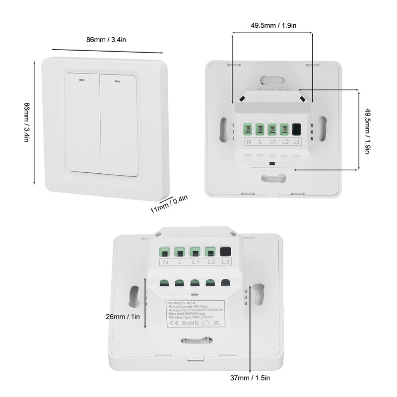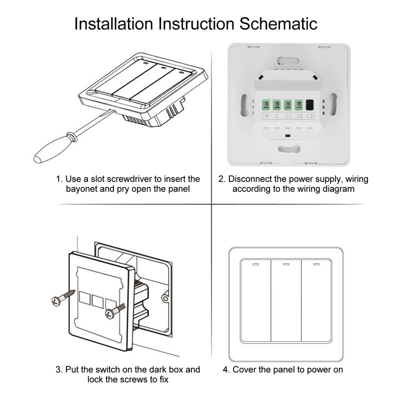 1、Glass Panel: This switch uses a glass panel, which makes the outside of the switch look very transparent and pretty. 2、Inductive Touch: This switch uses inductive touch control, which is very sensitive and good operation when adjusting the lights. 3、Voice Control: This switch supports voice control. When you want to adjust the lights, you don't need to walk around, which is very convenient. 4、Timing Function: This switch can fully control and plan to set the time period when the smart touch switch is used, which saves the waste of electricity. 5、Family Sharing: You can share this switch with your family. This switch supports one phone to control multiple devices or multiple phones to control one device. 6、Cell Phone App Connection: This switch can be operated and checked the switch status on the cell phone app at any time.