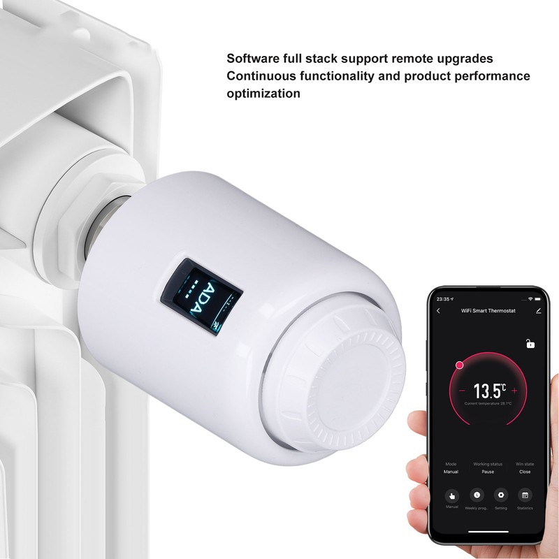 1、AUTOMATIC OR MANUAL MODE: Choose thermostat automatic or manual mode to meet your needs while saving energy. Automatic mode has four time programs for each day of the week, giving you the freedom to independently make your daily schedule, so your comfort setting matches your time very well 2、ENERGY SAVING: If needed, only use a heating plan to heat your home to the right temperature to save energy 3、UPGRADE SUPPORT: APP control thermostat software full stack supports remote upgrades, continuous functionality and product performance optimization 4、ACCURATE AND RELIABLE: The thermostat valve can set the temperature between 3-35℃ with a temperature measurement error of 3℃ 5、TECHNICAL PARAMETERS: The standby current of the smart radiator valve is 5uA, the ambient temperature is 0‑50℃, the surface temperature is up to 90℃, and the protection level is IP20