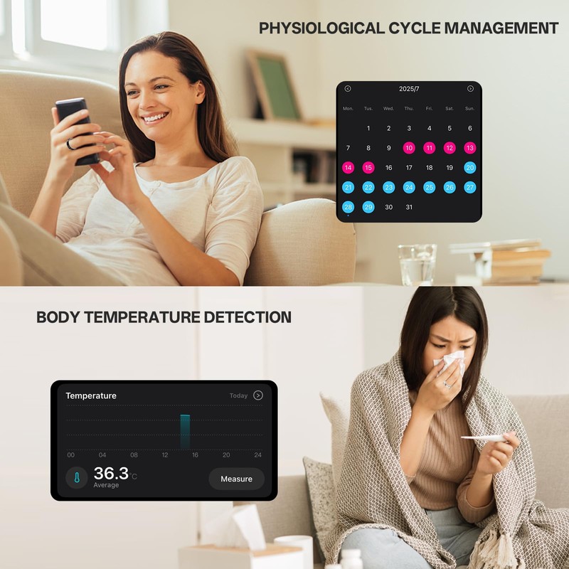 - Discreet Vibration Alerts: Never miss important moments with customizable vibration notifications for calls, messages, reminders (hydration, medication, events), and health warnings—all delivered subtly through the ultra-low-power motor in this sleek smart ring for men and women