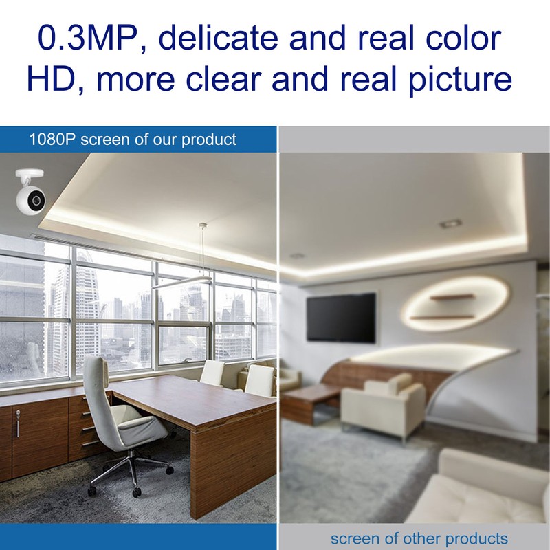 1、Delicate Picture: Made of premium ABS, the smart security camera has 0.3MP with delicate and real color, full high definition makes the screen more clear. 2、Adjustable: The wireless security camera possess horizontal 360 degree and vertical 180 degree adjustable, can be rotated at different angle, you can manually adjust the ideal angle. 3、Motion Detection: Equipped with motion detection, two way voice, built in microphone and infrared night vision, the infrared camera is safe and assured for communication and can give you peace of mind in low light or no light. 4、AP Hot Spot: With USB port, high speed transmission, plug and play, you can view it in real time, the FHD camera has a variety of storage methods, cloud encryption storage is more secure. 5、Remote Monitoring: The ABS security camera supports multi devices, multi people for simultaneous online viewing, suitable for monitor the elderly and children, protect the safety of the market, a multi purpose machine.