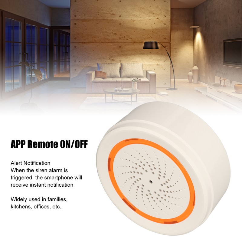 1、SOUND LIGHT ALARM: When triggered, the alarm will emit sound and light, which is greater than 90DB, you can hear the alarm anywhere in your home. 2、REMOTE CONTROL: APP can switch on and off the alarm remotely, and immediately notify your smartphone when the alarm is triggered. 3、POWER OFF MEMORY: In case of sudden power failure, the alarm will save the parameters previously set in the application program and automatically restore. 4、QUICK RESPONSE: The security alarm has ultra quick response, strong anti interference ability, ultra low power consumption, and supports 5V 1A USB power supply. 5、HIGH SAFETY: Smart wireless siren alarm can be widely used in home, kitchen, office and more occasion to ensure family safety.