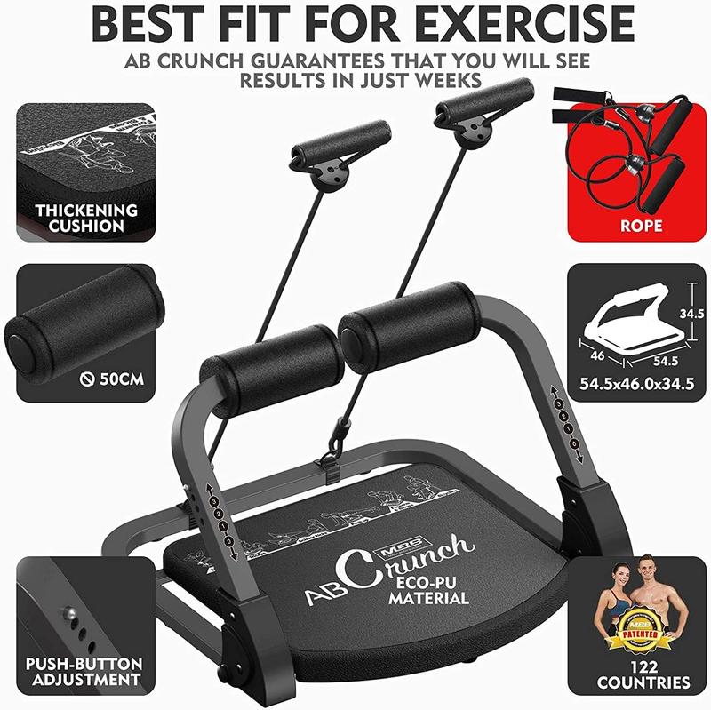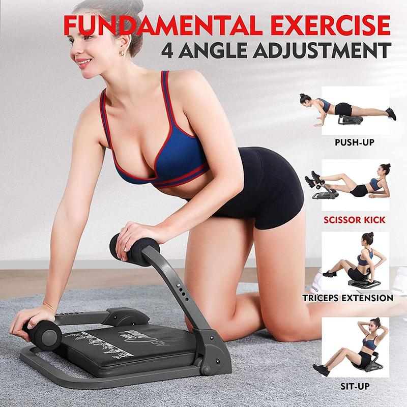- Multiple Workouts: ab tuck, crunches, sit up, push up, forearm workout, scissor kicks, glute bridge, bicycling. You can target your core, do upper body, lower body and cardio all in one compact ergonomic design. 6 great exercises plus cardio to give you the ultimate total body calorie blasting workout.
