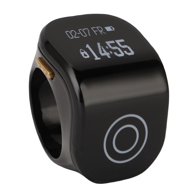 Smart Tasbih Zikr Ring,Clear LCD Display Ring Finger Counter,Intelligent Touch Digital Counter Prayer Reminder Ring (Black)