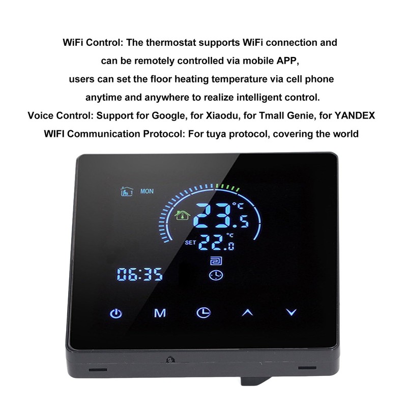 • Heating Temperature Control: This thermostat is designed for heating floors, which can accurately control the underfloor heating temperature to avoid overheating or overcooling and provide a comfortable indoor environment.