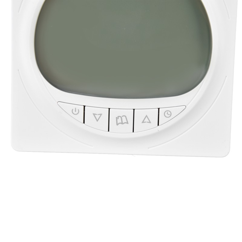 1、HIGH QUALITY MATERIAL: The shell of the thermostat is made of PC and ABS flame retardant materials, which are sturdy, stable and durable. 2、HIGH ACCURACY: The thermostat adopts NTC thermistor temperature sensor, with high accuracy, fast and reliable data reading. 3、PROGRAMMABLE: The floor heating thermostat has a programming function, which can be controlled in 6 time periods a day, divided into rest days and working days, which can be adjusted. 4、3 MODES: Plumbing thermostat with three modes, manual mode, programming mode, away from home mode, fully functional. 5、APPLICATION: The temperature controller has a wide range of applications, suitable for living rooms, bedrooms, dining rooms, halls, etc.