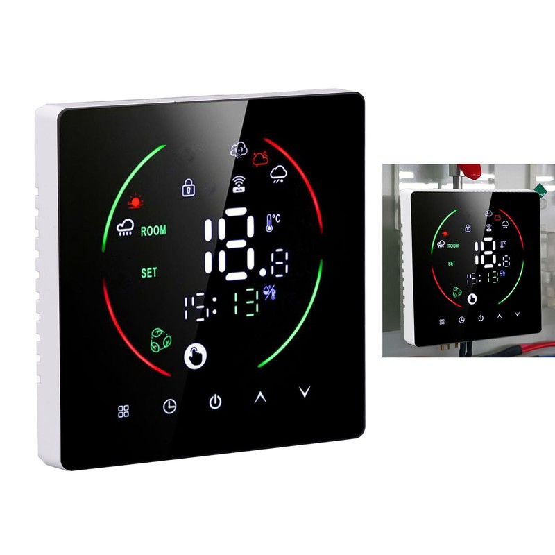 1、[Remote Control] With WiFi connectivity function, this smart thermostat allows you to stay in control of your indoor temperature from anywhere through your mobile APP. 2、[7 Day Schedule] Easily set up daily schedules for home, sleep, away, and more, eliminating the need for constant thermostat adjustments, ensuring optimal comfort throughout the day. 3、[User Friendly LED Display] The WiFi thermostat features a clear LED display and intuitive touch controls, simplifying temperature adjustments and enhancing user experience. 4、[Energy Efficient] Enjoy accurate temperature control with low energy consumption, helping to save on energy bills while maintaining a comfortable environment in your space. 5、[Versatile Applications] Ideal for hotel, villa, apartment, office building, hospital, school, mall, sports venue, leisure venue, supermarket, warehouse, and more.