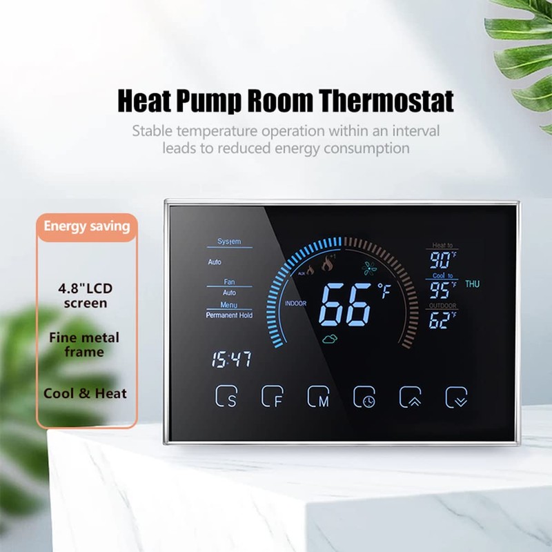 Smart thermostats, Heat Pump Room Thermostat Temperature Controller 4.8 Inch Color LCD Screen Programmable Touch Control for Home Office Hotel