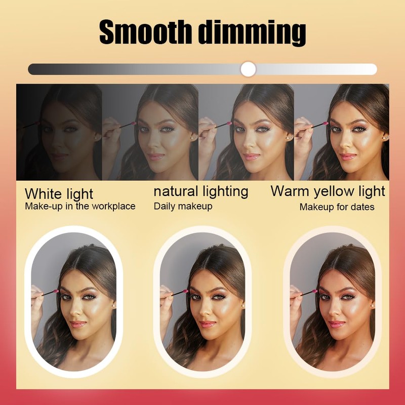 - 【3-Touch Lighting Modes for Flawless Makeup】-Switch effortlessly between White, Warm, and Natural light with a simple touch. Perfect for matching indoor/outdoor lighting, ensuring your makeup looks flawless in any setting—from office meetings to date nights.