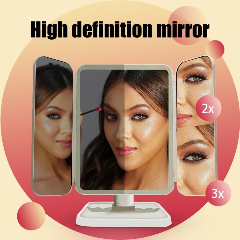 - 【270° 3D Mirror & 3X Magnification】-The triple-sided mirror rotates 270° and features 1X, 2X, and 3X zoom levels. Catch every detail, from blended eyeshadow to tiny brow hairs, and never miss a spot again.