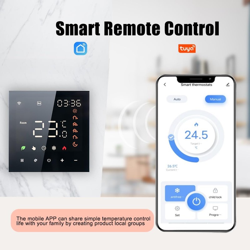 - ??Manual & Automatic Mode: Both manual and automatic modes, allowing you to set the temperature of wall thermostat to your desired level and save on energy costs. Smart voice control can compatible with and Google Home.